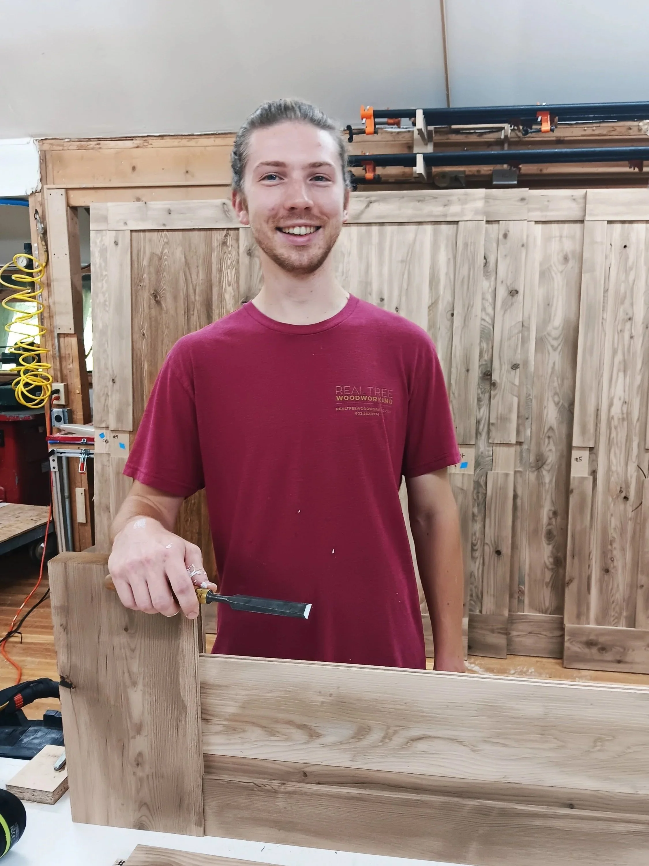After his return to VT amidst the early days of the pandemic Matt spent a few years working on a friend’s farm before the draw of woodworking pulled him back to the workshops. That’s when he found us here at Real Tree and we couldn’t be happier to have him!